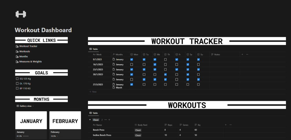 Whether you're a fitness enthusiast or just starting out, our workout dashboard Notion template can help you stay motivated and on track towards achieving your goals. Try it out today and take your fitness journey to the next level!